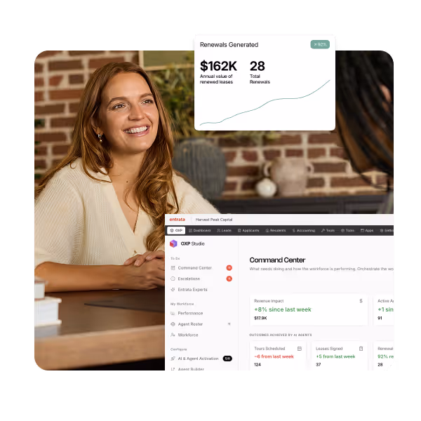 A centralized workspace built directly inside the Entrata platform designed to help operators manage all of their AI agents and onsite teams from a single place. OXP Studio gives teams the ability to automate key workflows, deploy AI agents across the platform, and see exactly where AI is driving value.